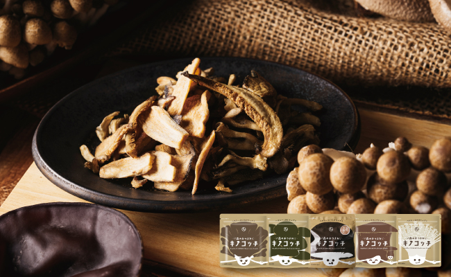 『キノコッチ』は、香り高いきのこの風味を楽しめるスナック。軽くつまめるフリーズドライタイプで、いつでもどこでもきのこのおいしさを楽しめます。おやつ代わりにそのまま食べたり、スープやパスタに添えたりと使い方も自由。しいたけ・えのき・えりんぎ・しめじ・まいたけの5種類があり、それぞれ香りや食感を活かしています。豊かな香ばしさとうま味は、いつもの食卓や休憩時間をちょっと特別にしてくれる存在。季節を問わず、いつでもきのこの恵みを身近に感じられる商品です。