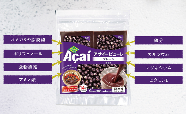 現代の食生活では、鉄分や抗酸化成分、良質な油分が不足しがち。 アサイーにはそれらをまるごと補う力があり「食べる美容・食べるエネルギー」として注目されています。