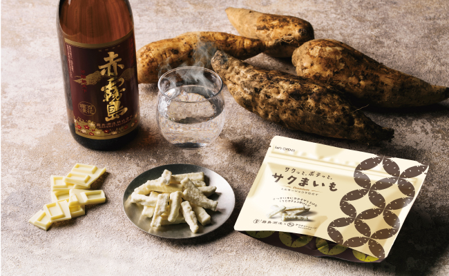 タマチャンショップと霧島酒造の人気コラボ「サクまいも」シリーズから、 冬季限定の新フレーバー『サクまいも ミルキーショコラ仕立て』が登場。焼酎にも使用される宮崎県産のさつまいも「黄金千貫」を減圧フライ製法でサクッと軽やかに揚げ、低糖ホワイトチョコで包み込んだ、とろける口どけのスイーツです。雪のように白く繊細なホワイトチョコが、サツマイモのやさしい甘みと調和。 ひとくちごとにふんわりと溶け出す味わいは、心までほどけるような幸福感をもたらします。すっきりとした後味で、ティータイムやリラックスタイムにもぴったり。 ワインや焼酎と合わせれば“大人の冬スイーツ”としても楽しめます。