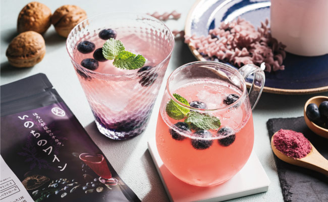 ポリフェノールを毎日とりたいと思っても、食材を常にそろえるのは意外と大変です。「いのちのワイン」は、ぶどう・ベリー・カカオ・黒大豆など、ポリフェノール豊富な素材を使った楽しめるパウダータイプのドリンクです。水や炭酸水に混ぜるだけで使いやすく、ノンアルコールでいつでも飲むことができます。ビタミンCやビタミンEも一緒にとれるため、健康管理用の飲み物としても便利。毎日の飲み物を少し変えるだけで、ポリフェノール習慣を無理なく続けられ、日々の栄養補給を優しく支えてくれる存在として人気の商品です。