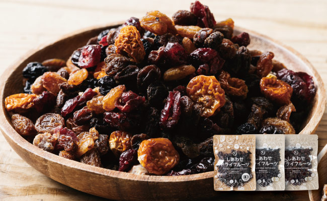 しあわせドライフルーツ(ドライベリー・トンプソンレーズン・クランベリー・サンマスカットレーズン)