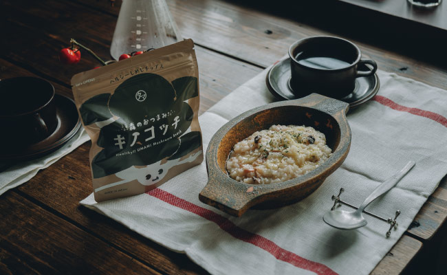 リゾットは「自分をいたわる時間」にぴったりな料理。少し疲れた日や、自分にごほうびをあげたい日に、温かいリゾットで心と体を満たしてあげてください。『キノコッチ』は常温保存できるので、いつでも手軽にきのこ料理が楽しめます。リゾット以外にも、スープ・パスタ・炊き込みご飯など、幅広いアレンジにも便利。きのこの豊かな風味と食物繊維、そして乳酸菌を配合した『キノコッチ』で、秋冬の食卓をちょっとリッチに彩ってみてはいかがでしょうか。