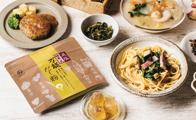 おいしいスープづくりの決め手は、やっぱり「だし」です。「綾菜式減塩 万能だし粉」は、玉ねぎ粉末・鰹節粉末・酒粕パウダーなどのバランスよくブレンドした万能調味料です。みそ汁やスープに小さじ1杯加えるだけで、深みのあるコクと旨みがプラスされます。化学調味料に頼らず、自然素材の力で料理の味を引き立てるため、やさしく奥深い味わいに仕上がります。スープはもちろん、煮物・炒め物・チャーハンなど、幅広い料理に使える便利なアイテムです。
