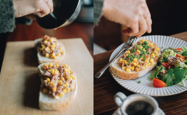 『たまねぎスープ』でつくるツナのオープンサンドのレシピ