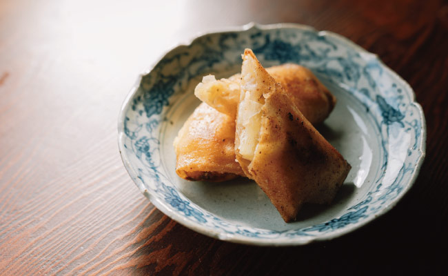 2.油を180℃に熱し、両面がきつね色になるまで揚げる。