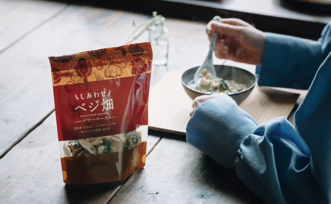 サッと作れるので、時間がない時でも温かく栄養チャージできます。朝だけでなく、仕事で疲れて帰ってきた夜に「包丁もまな板も使いたくない…」と言う時に助けてくれるのが、乾燥野菜です。冷蔵庫が空っぽでも『ななつのしあわせ ベジ畑』があれば安心。野菜を余らせてしまう方や、仕送りにもおすすめ。日常使いや「ちゃんと食べたいけど、頑張りたくない日」にも、強い味方です。