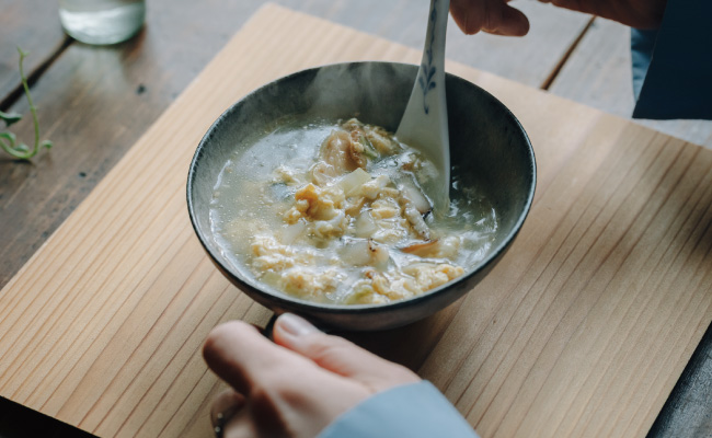 野菜それぞれの旨みと生姜の存在感で、ホッと体と頭が目覚めます。野菜の食感もしっかりしており、朝からちゃんと野菜を食べている感じもあって、体にやさしく続けやすいスープです。