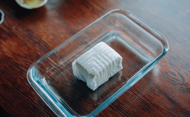1.豆腐はキッチンペーパーに包んで耐熱容器へ入れ、電子レンジ(600W)で2分加熱し、水を切り粗熱をとる。