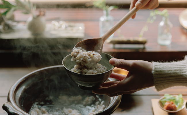 体調を崩したときだけでなく、食べすぎ・飲みすぎの翌日のリセットごはんとしてもぴったりです。鶏ガラ風味のほかに、白だしや塩昆布でアレンジするのもおすすめ。もちろん、普段の雑穀ごはんとして、毎日の食卓でも活躍してくれる頼もしい一品です。