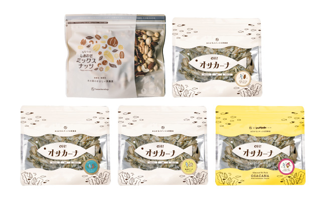 そうした食の選択肢が広がるなか、このたびタマチャンショップの商品が、BASE FOODが展開する、継続コース会員向けにセレクトしたおすすめの商品を販売するサービス「BASE FOOD SELECTION(https://shop.basefood.co.jp/selected-items )」にて、販売されることになりました。今回登場するのは、魚とナッツのおいしさをひと箱にまとめた「ヘルシーおやつセレクション。いつもの食事に加えて、間食の時間にも取り入れやすい新しいラインアップです。