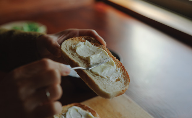 2. 軽くトーストしたパンにクリームペーストを塗る。