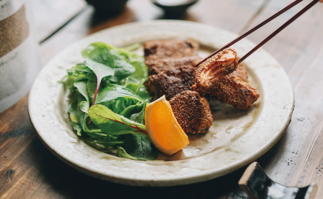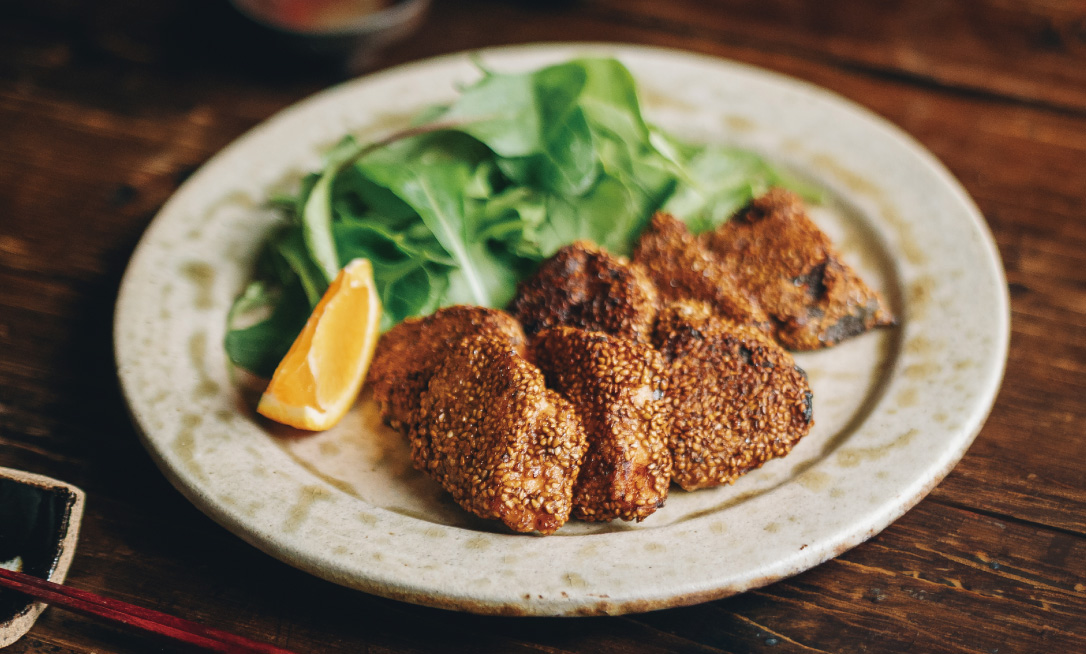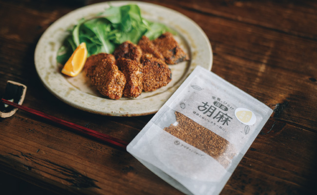 金ごまの香ばしさが広がって、ひと口目からしっかり満足感のあるおかずに。下味がついているので、そのままでも美味しく食べられ、冷ませばお弁当にもよく合います。大葉を衣に混ぜたり、ヨーグルト味噌ソースを添えたり、パンにはさんでサンドイッチにしたりと、少しアレンジしながら楽しむのもおすすめです。