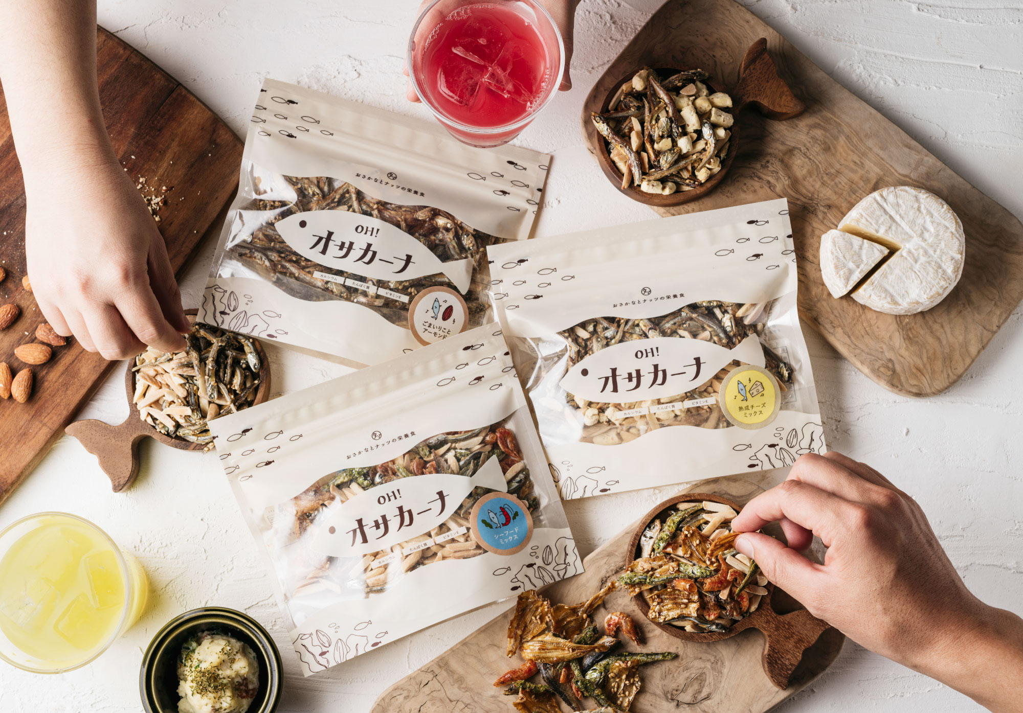 お客様投票で選ばれし人気のアーモンド小魚3種類を堪能できるお試しオサカーナBEST3(ごまいりこ&アーモンド・シーフードミックス・熟成チーズミックス)をセットに!