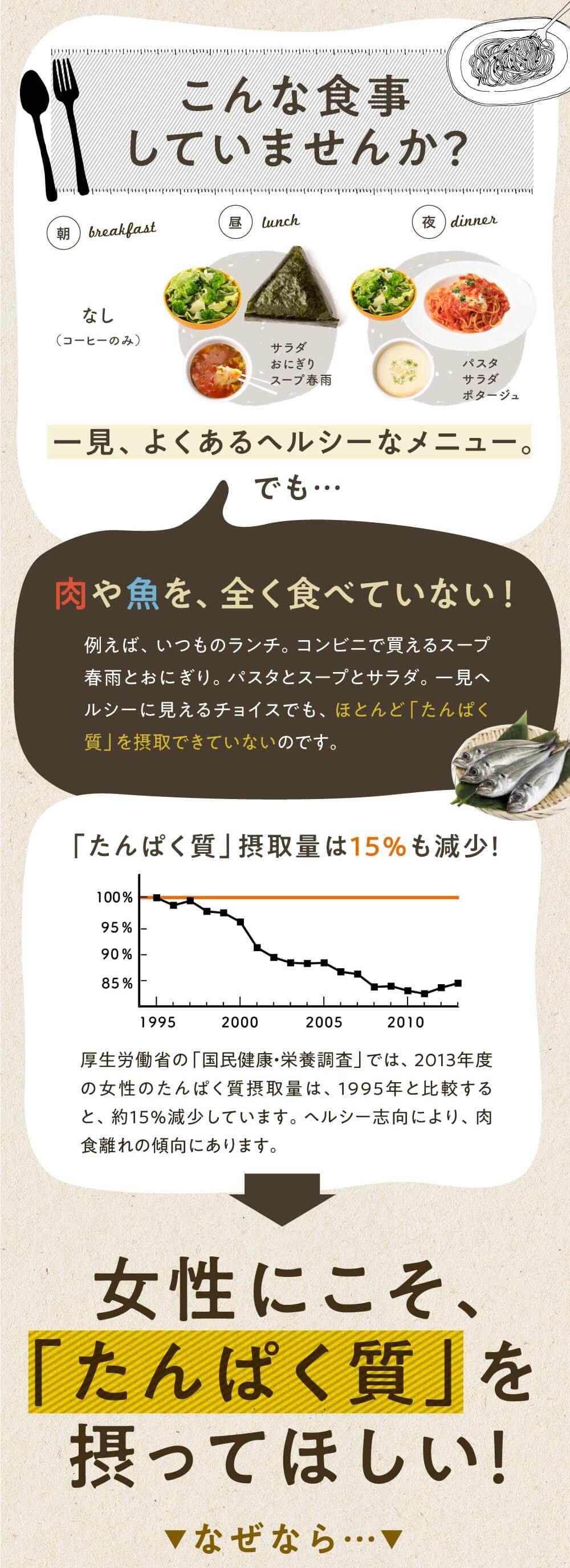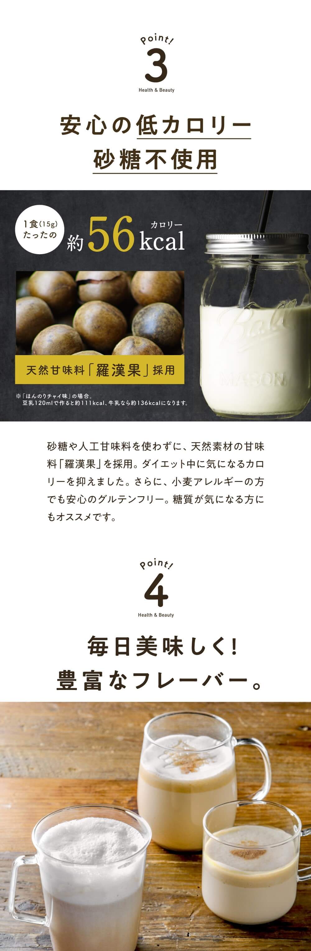 | 【栄養成分】栄養機能食品 (葉酸・ビタミンB1・ビタミンB6・ビタミンC・ビタミンE) ※葉酸は、赤血球の形成を助ける栄養素です。 葉酸は、胎児の正常な発育に寄与する栄養素です。 ※ビタミンB1は、炭水化物からのエネルギー産生と皮膚や粘膜の健康維持を助ける栄養素です。 ※ビタミンB6は、たんぱく質からのエネルギーの産生と皮膚や粘膜の健康維持を助ける栄養素です。 ※ビタミンEは、抗酸化作用により、体内の脂質を酸化から守り、細胞の健康維持を助ける栄養素です。 ※ビタミンCは、皮膚や粘膜の健康維持を助けるとともに、抗酸化作用を持つ栄養素です。 1食(15gあたり) 1日女性平均摂取カロリー目安 全国平均1800〜2200kcalに対し ●熱量:55.95kcal ●たんぱく質:11.07g ●脂質:0.54g ●炭水化物:1.69g[糖質:1.45g(糖類:0.27g)、食物繊維:0.24g] ●食塩相当量:0.29g ()の数値は栄養素等表示基準値に対する充足率です。 ●ビタミンB1:1.845mg(153%) ●ビタミンB6:1.785mg(137%) ●ビタミンC:325.5mg(325%) ●ビタミンE:8.925mg(141%) ●葉酸:200μg(83%) ●鉄:2mg ●亜鉛:8.8mg ●ピュアプロテイン100 1食(15gあたり) 熱量:55.7kcal たんぱく質:12.7g 脂質:0.31g 炭水化物:0.5g[糖質:0.2g(糖質:0.13g)、食物繊維:0.3g]、食塩相当量:0.14g ●やさいプロテイン100 1食(15gあたり) 熱量:56.55kcal たんぱく質:13.1g 脂質:0.45g 炭水化物:0.24g[糖質:0g(糖類:0g)、食物繊維:0.24g]、食塩相当量:0.51g ●休息プロテイン(ミックスフルーツ味) 1食(15gあたり) エネルギー:55.35kcal タンパク質:11.45g 脂質:0.39g 炭水化物:1.7g [糖質:1.35g(糖類:0.44g)、食物繊維:0.35g)] 食塩相当量:0.19g ●博多あまおう味 1食(15gあたり) 熱量:55.95kcal たんばく質:11.07g 脂質0.54g 炭水化物:1.69g[糖質:1.45g(糖類:0.27g),食物繊維:0.24g] 食塩相当量0.29g ●はんなり宇治抹茶味 熱量:55.35kcal、たんぱく質:10.37g、脂質:0.45g、炭水化物:2.46g、[糖質:2.1g(糖類:0.39g)、食物繊維:0.36g]、食塩相当量:0.29g、ビタミンB1:1.845mg(153%)、ビタミンB6:1.785mg(137%)、ビタミンC:325.5mg(325%)、ビタミンE:8.925mg(141%)、葉酸:200μg(83%)鉄:2㎎、亜鉛:8.8㎎ ●ソイ黒ごま 熱量:56.85kcal たんぱく質:11.625g 脂質:0.7g 炭水化物:1.275g[糖質:0.705g(糖類:0.1335g)、食物繊維:0.57g]食塩相当量:0.222g ●ソイアーモンド 熱量:55.65kcal たんぱく質:12.285g 脂質:0.435g 炭水化物:0.885g[糖質:0.42g(糖類:0.105g)、食物繊維:0.465g]食塩相当量:0.234g ●ソイショコラ 熱量:55.2kcal たんぱく質:11.775g 脂質:0.51g 炭水化物:1.23g[糖質:0.525g(糖類:0.11g)、食物繊維:0.705g]食塩相当量:0.264g ●ソイミルクティー 1食(15gあたり)熱量:55.65gkcal たんぱく質:12.285g 脂質:0.405g 炭水化物:0.93g[糖質:0.495g(糖類:0.104g)、食物繊維:0.435g] 食塩相当量:0.239g ※上記の( )内の値は、栄養素等表示基準値(18歳以上、基準熱量2,200kcal)に占める割合[%]です。 |