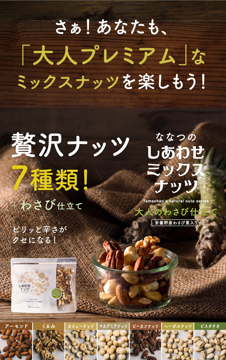 ななつのしあわせミックスナッツ 大人のわさび仕立て