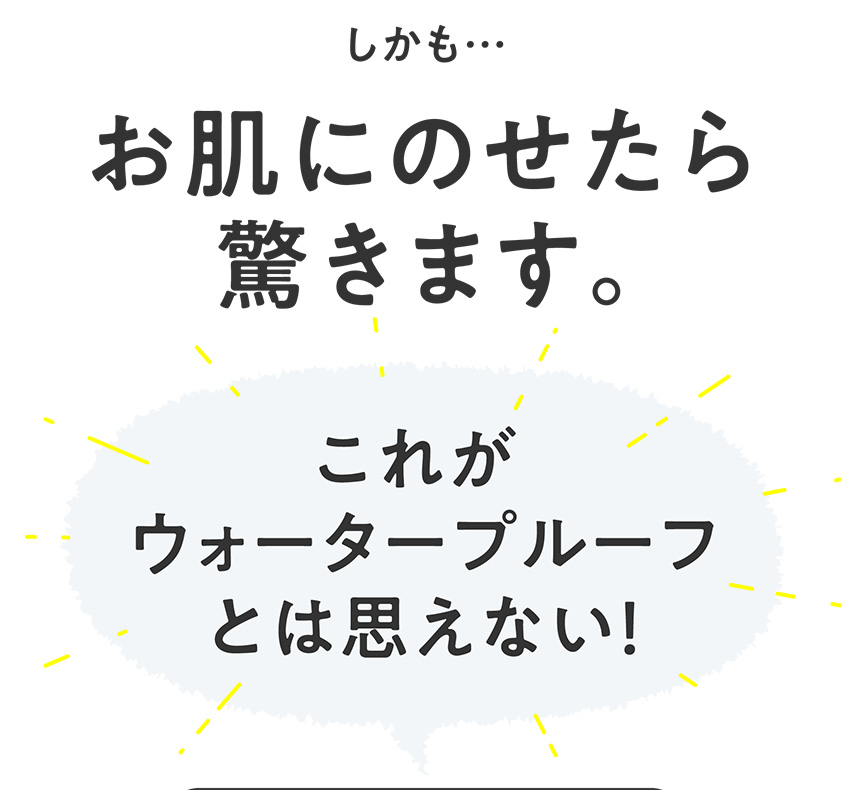 ウォータープルーフタイプとは思えないほどの「軽さ」と、肌にすぅ~と馴染む「つけ心地」が特徴。