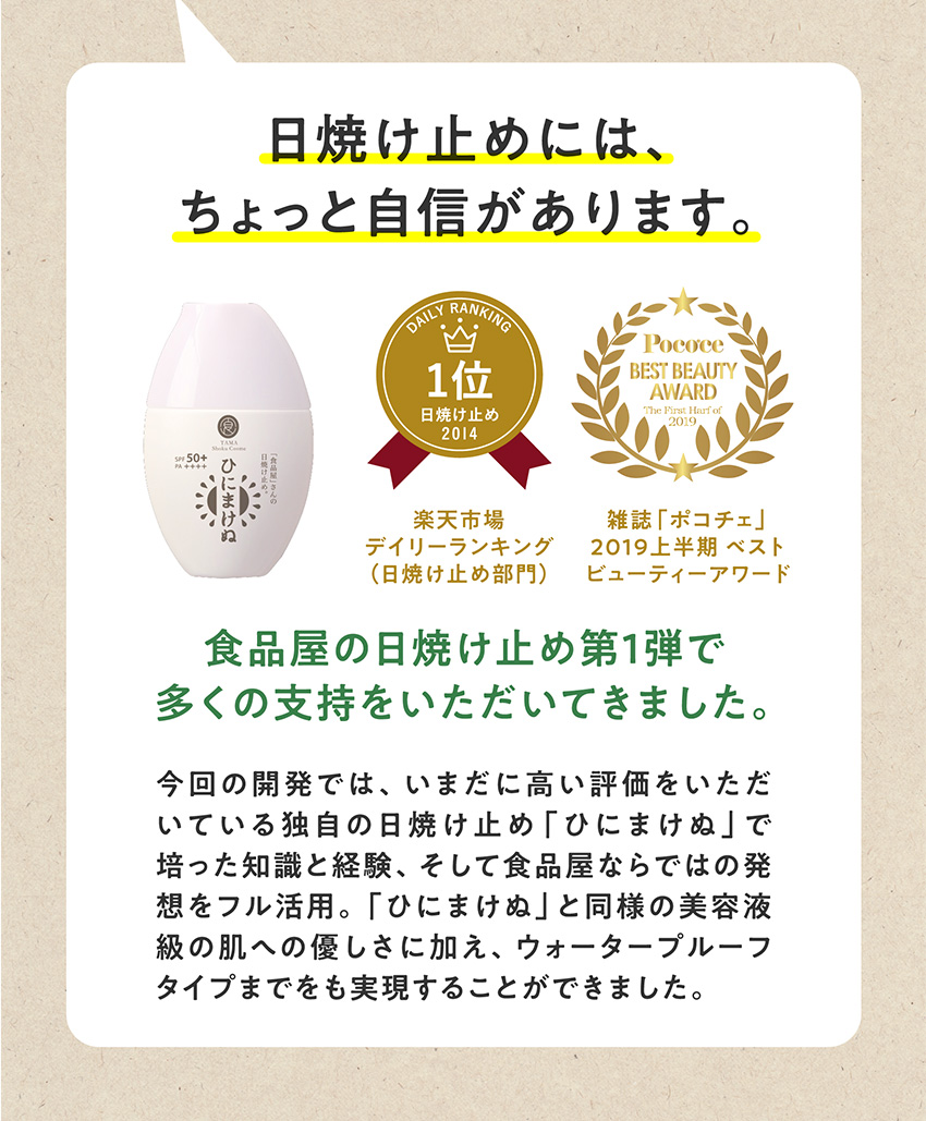 SPF50+、PA++++の最高スペックのウォータープルーフタイプ。
