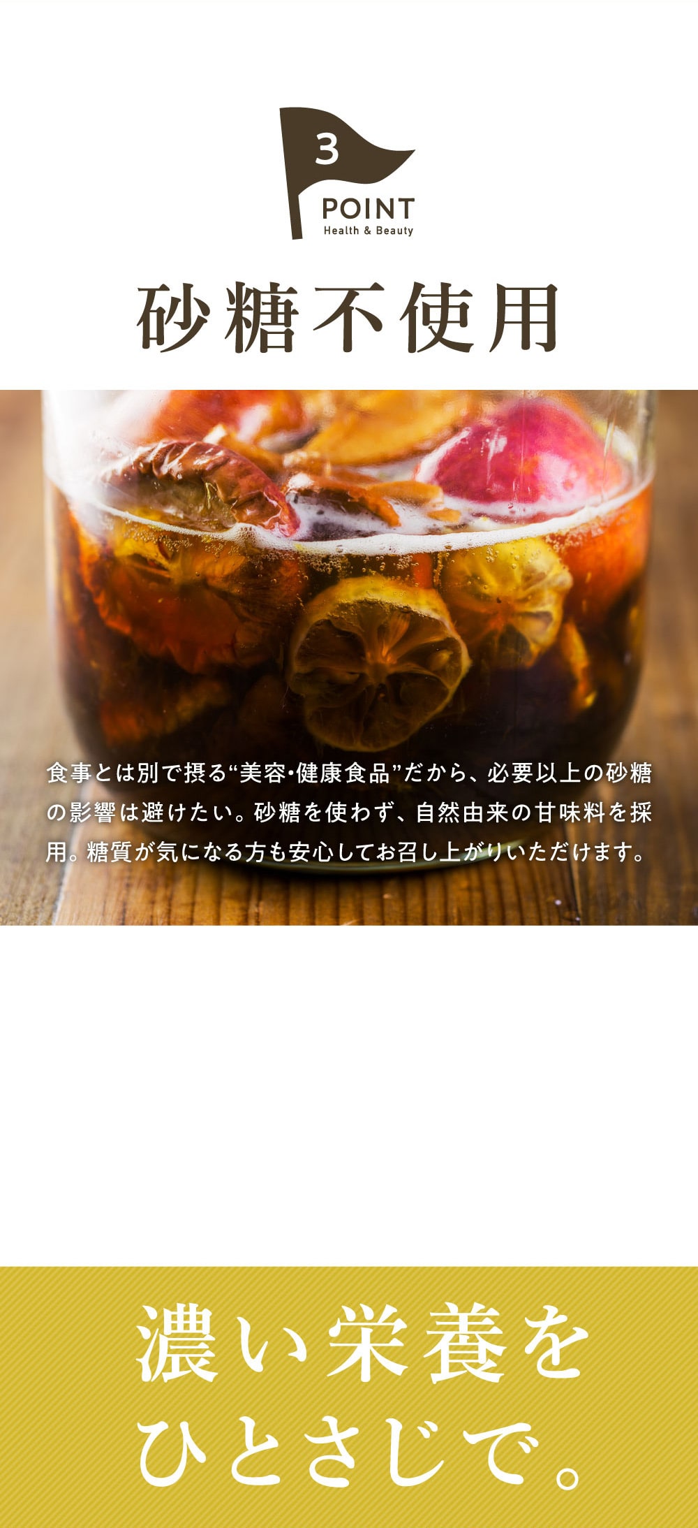 | 【使用方法】約100ccの水や炭酸水などに溶かしてお飲み下さい。 1日又は2日に一杯を目安にご使用下さいませ。 |