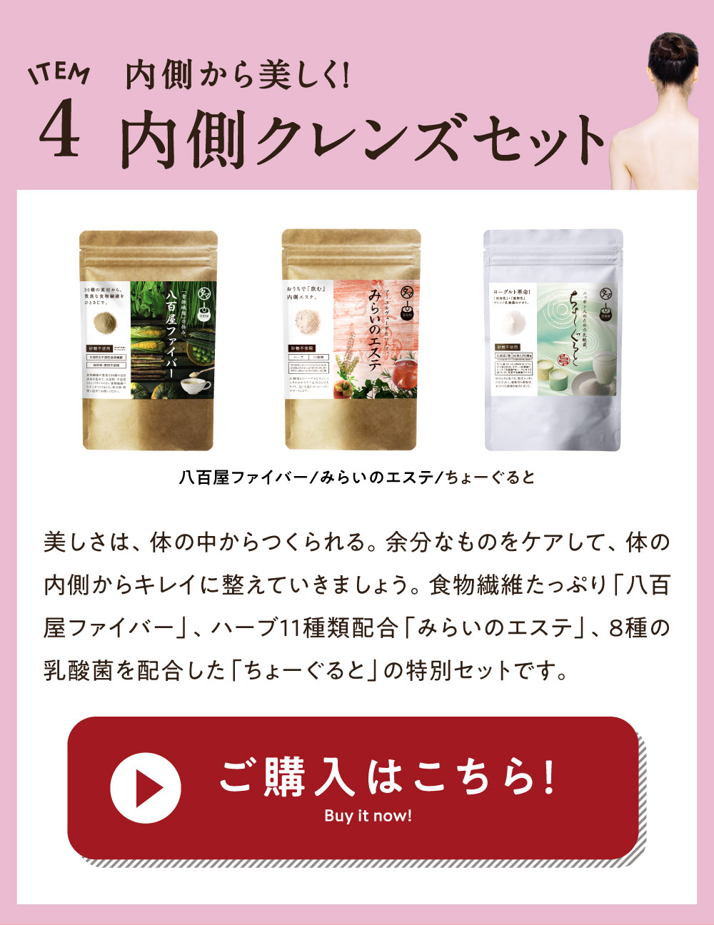| 【原材料】みらいのこうそはこちら こなゆきコラーゲンはこちら ちょーぐるとはこちら 植物性ちょーぐるとはこちら いのちのワインはこちら 母なるスムージはこちら みらいのエステはこちら ショクササイズはこちら みらいのミルクはこちら 八百屋ファイバーはこちら |