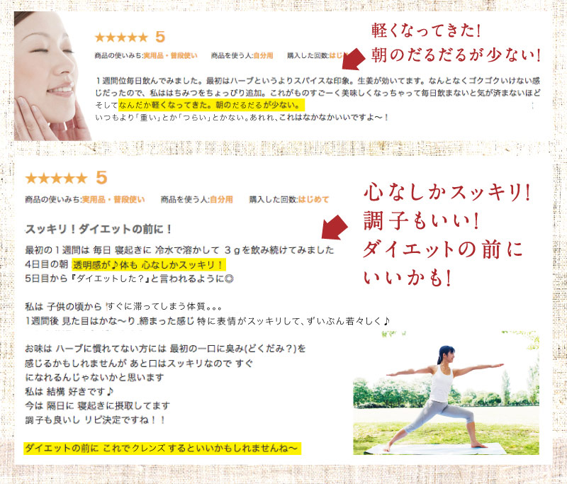 | 【使用方法】1杯約3g程度を約100ccの水や炭酸水などに溶かしてお飲み下さい。1日又は2日に一杯を目安にご使用下さいませ。 | |