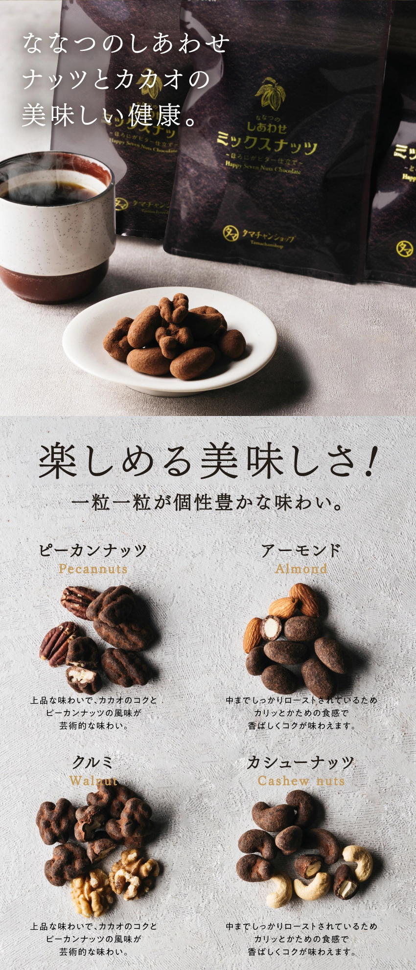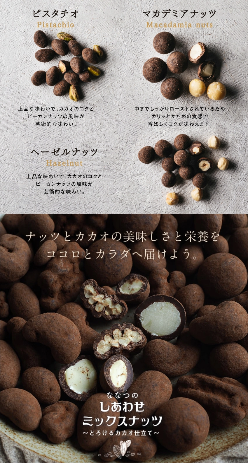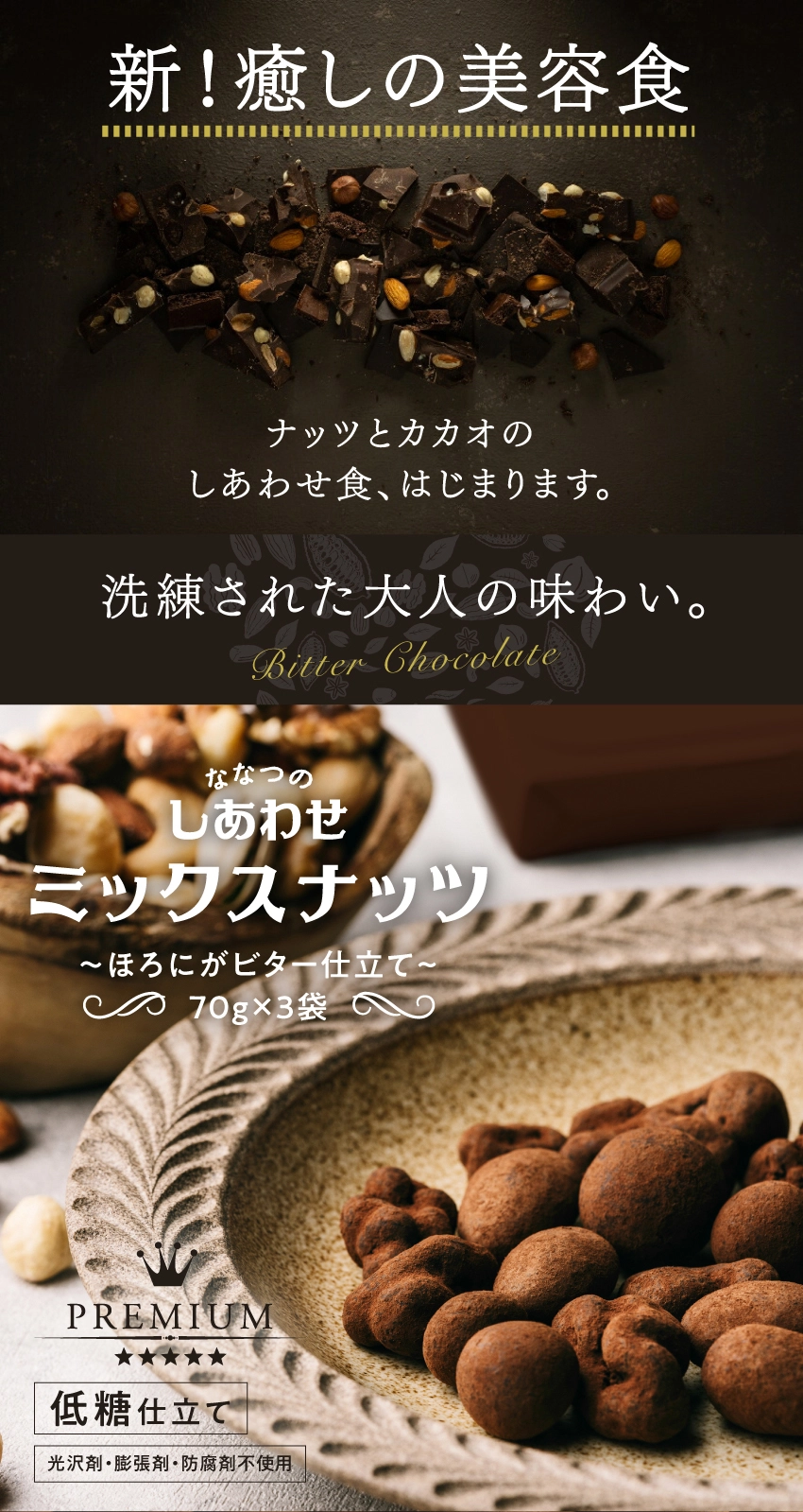 ななつのしあわせミックスナッツほろにがビター仕立て