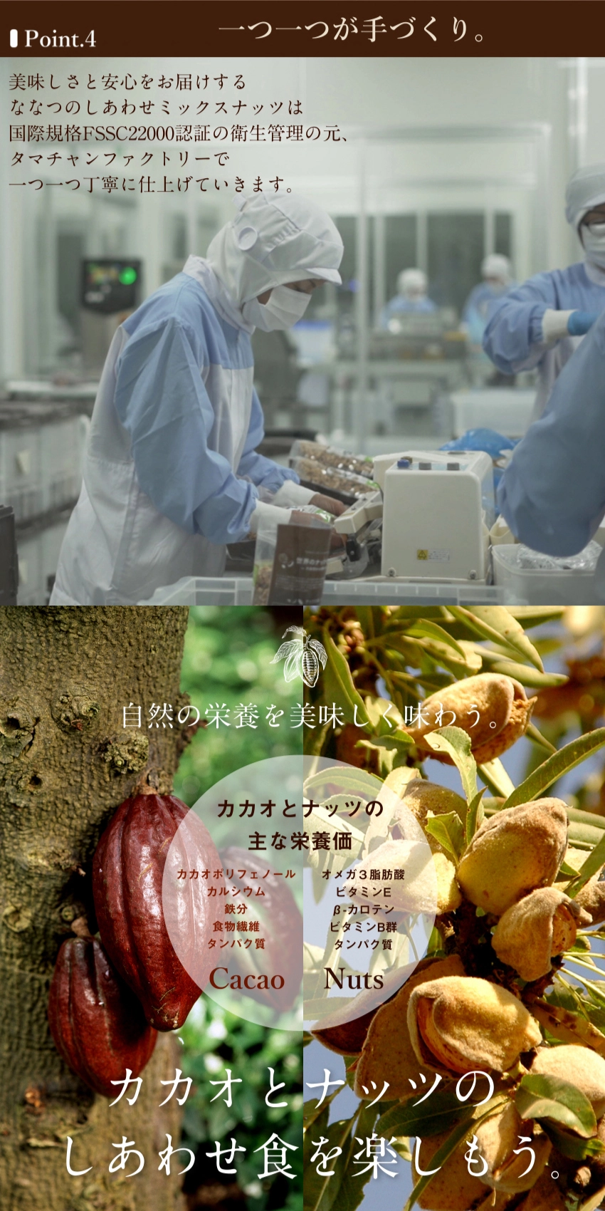 | 【原材料】チョコレート(カカオマス、マルチトール、ココアバター、植物油脂)(国内製造)、クルミ、カシューナッツ、アーモンド、ピーカンナッツ、マカ デミアナッツ、ヘーゼルナッツ、ピスタチオ/乳化剤(大豆由来)、香料、甘味料(ラカンカ抽出物)、(一部に乳成分・アーモンド・カシューナッ ツ・くるみ・大豆を含む) | |