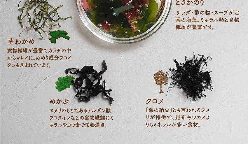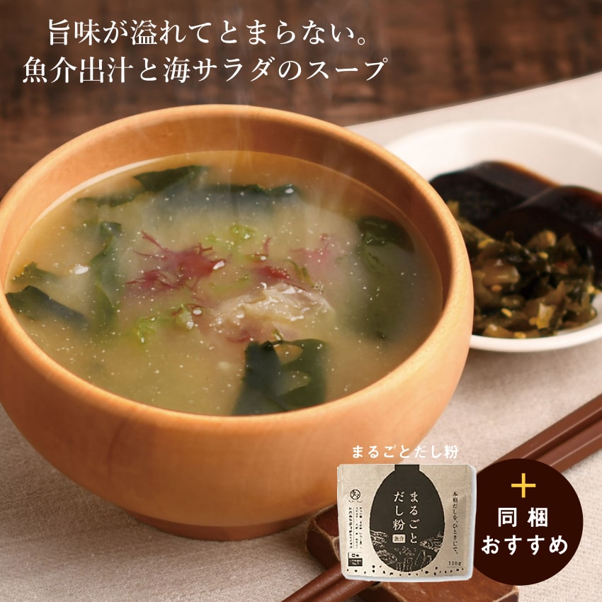 | 【原材料】わかめ(熊本県産)、茎わかめ(熊本県産)、めかぶ(熊本県産)、赤とさかのり(熊本県産)、青とさかのり(熊本県産)、白とさかのり(熊本県産)、クロメ(大分県産) ●海産物のため、稀に異物が入ってる場合がございます。十分に注意して取り除いてご使用ください。 |