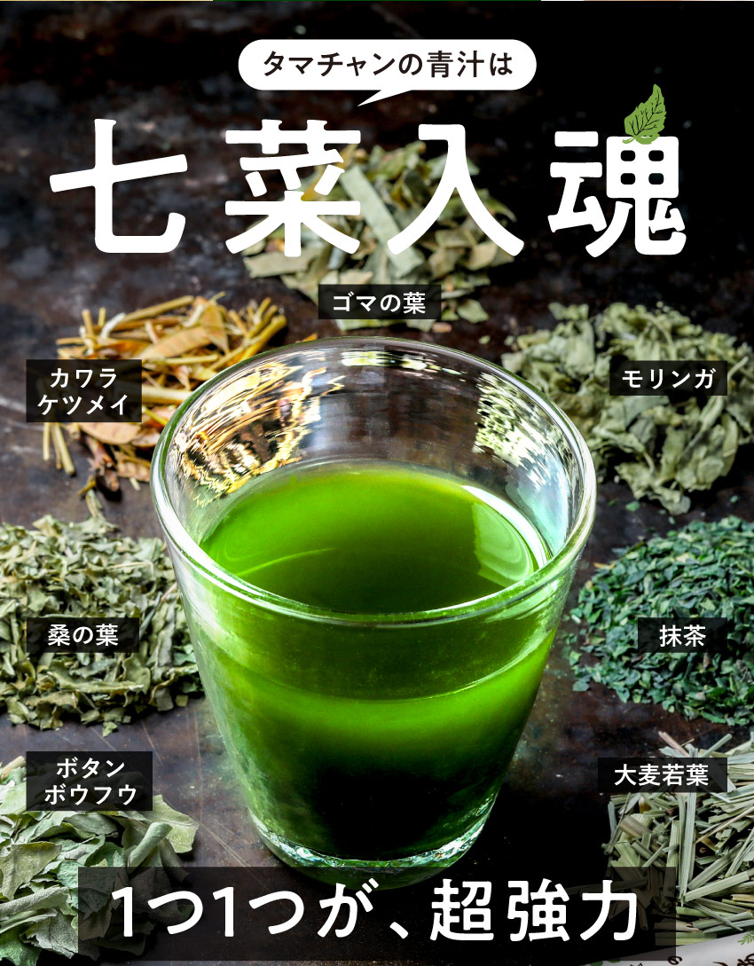 ついにタマチャンショップから青汁登場! 毎日の健康をサポートする、安心安全の無添加製法 オーガニック認証の7種類の選りすぐり原料を使ったタマチャンショップ完全限定の飲みやすさと品質を追求した毎日の健康をつくる青汁