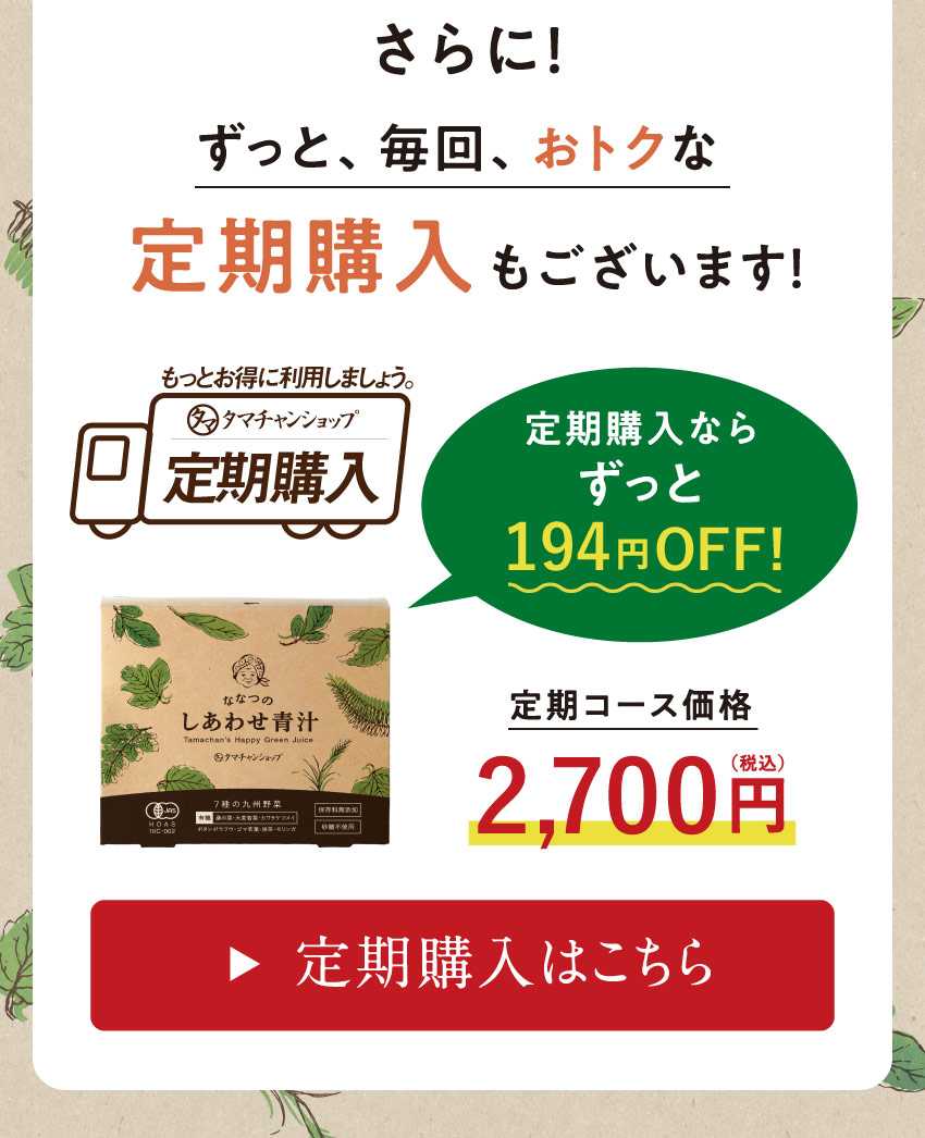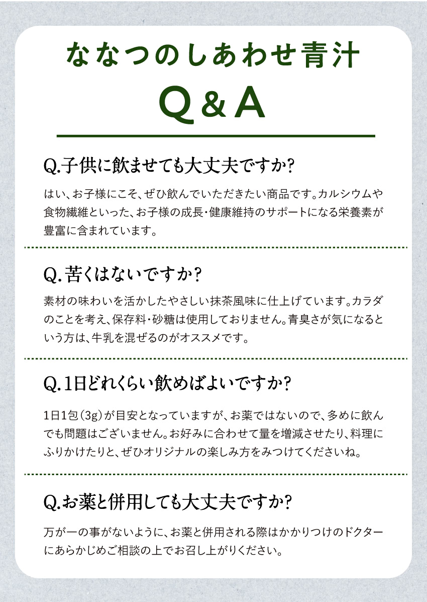 ▶︎通常購入はこちら【定期】ななつのしあわせ青汁3箱セット