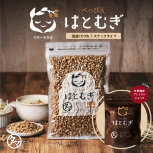 美容に嬉しい「ヨクイニン」がたっぷりの「はとむぎ」は、内側からのキレイづくりにオススメの自然食です。そのままポリポリ食べるのも良し、料理・お菓子のアクセントとしても大活躍すること間違いなし!煮出してハトムギ茶としていただくのも、オススメです。