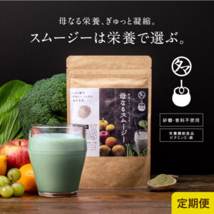 「母なるスムージー」は、1日に必要なビタミン・ミネラルがほぼ充足できる、まるで“栄養のかたまり"のようなスムージーです。牛乳と一緒に、酢やレモン、ヨーグルトなどを一緒に入れると、「母なるスムージー」独自の苦みや渋みが和らいで飲みやすくなりますよ。