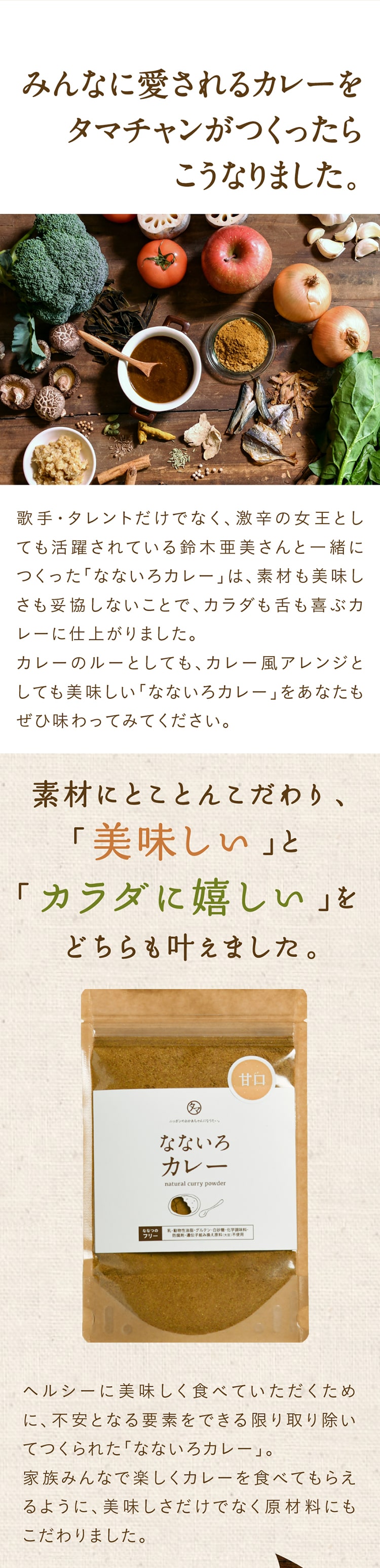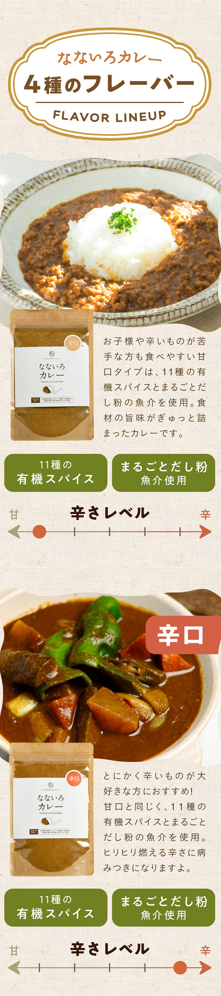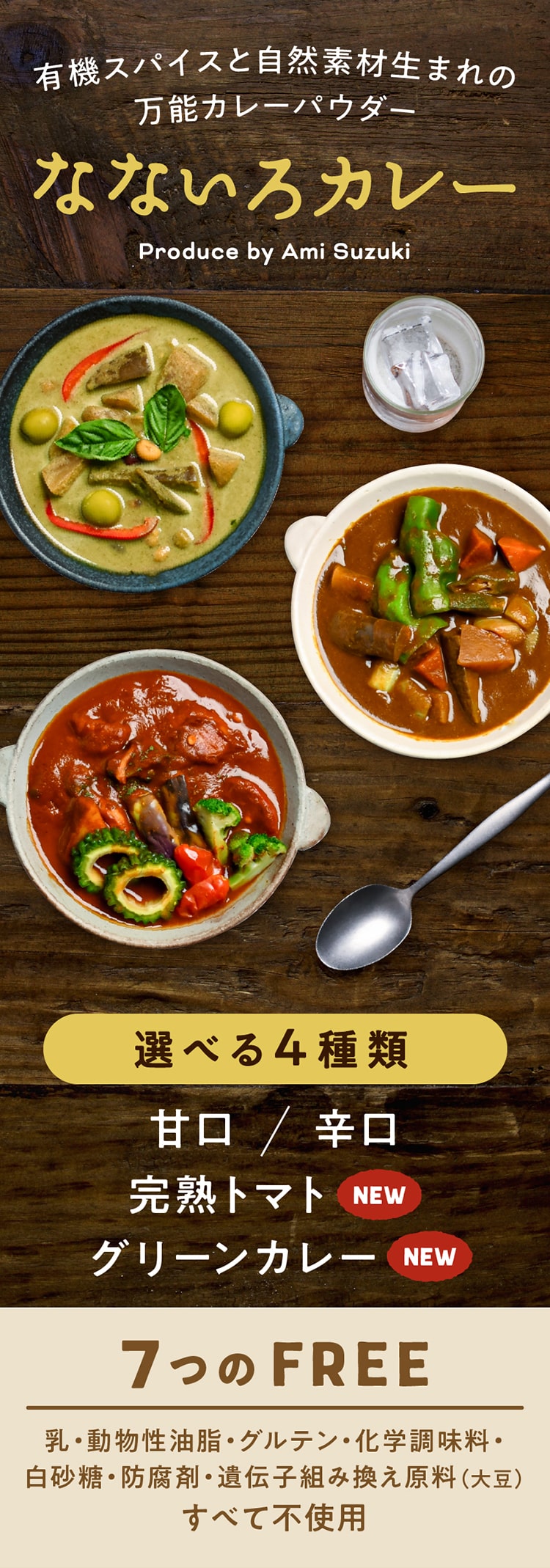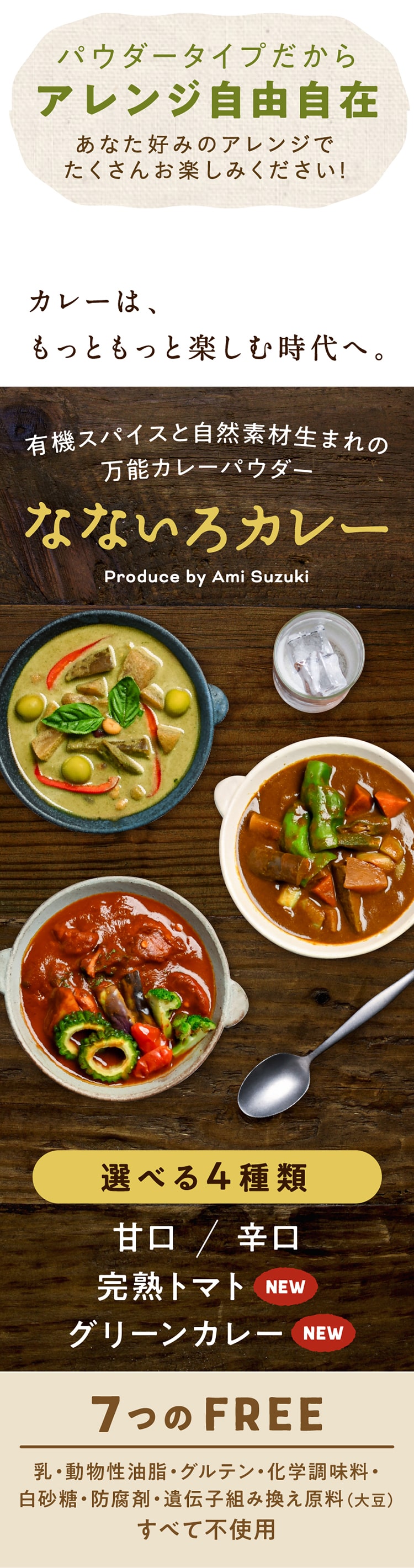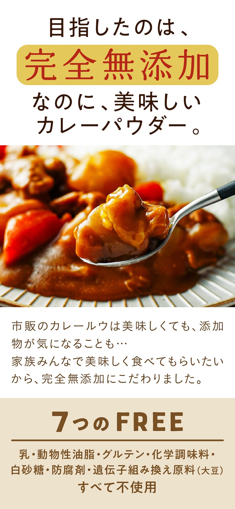 有機オーガニックスパイスと九州の野菜・和風だしで仕上げた、身体にヘルシーで美味しいカレー粉