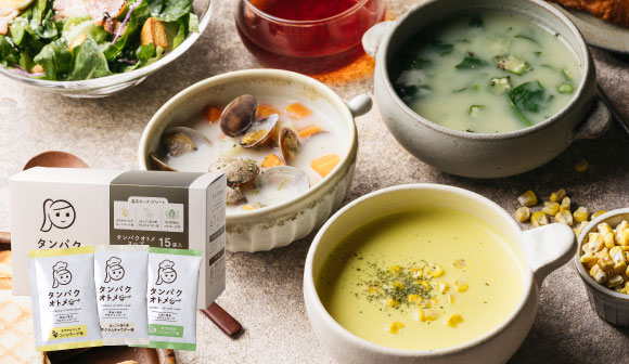 《12/22はスープの日》動物性+植物性のタンパク質を絶妙にブレンドし、さらにコラーゲンやリラックス成分のGABAを配合。一杯分ずつ個包装になっているので、お湯を注ぐだけで簡単に栄養満点のスープが完成します。