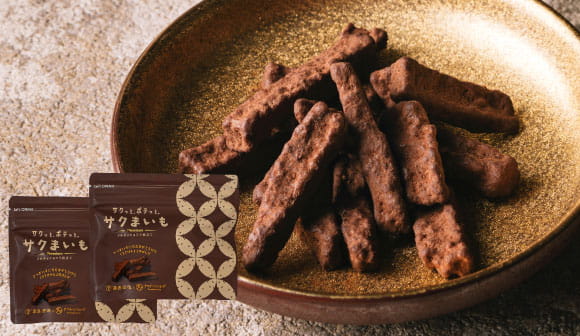 《2/14はチョコレートの日》サクっと食感の芋けんぴ「サクまいも」に、チョコレートをコーティング。2種類のチョコレートのとろける優しい甘さをぜひ食べ比べてみてください。