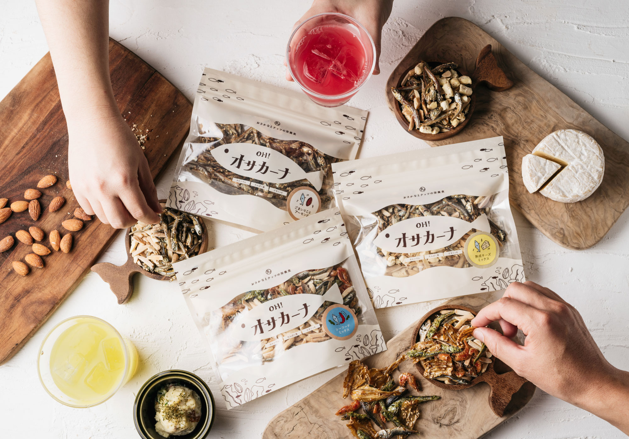 《2/14は煮干しの日》お客様投票で選ばれし人気のアーモンド小魚3種類を堪能できるお試しオサカーナBEST3(ごまいりこ&アーモンド・シーフードミックス・熟成チーズミックス)をセットに!
